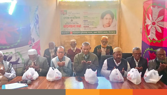 ১৩ ডিসেম্বর-২০২৫ শনিবার শহরের স্টেশন রোড মুক্তিযোদ্ধা সংসদ কমপ্লেক্সে বাংলাদেশ মুক্তিযোদ্ধা সংসদ দিনাজপুর জেলা ইউনিট কমান্ডের আয়োজনে সাবেক প্রধানমন্ত্রী বিএনপির চেয়ারপারসন ও দিনাজপুর সদর-৩ আসনের ধানের শীষ প্রতীকের এমপি প্রার্থী বেগম খালেদা জিয়ার সুস্থতা কামনায় দোয়া মাহফিল ও আসন্ন জাতীয় সংসদ নির্বাচনে মুক্তিযোদ্ধাদের করণীয় শীর্ষক আলোচনা সভা অনুষ্ঠিত হয়েছে।