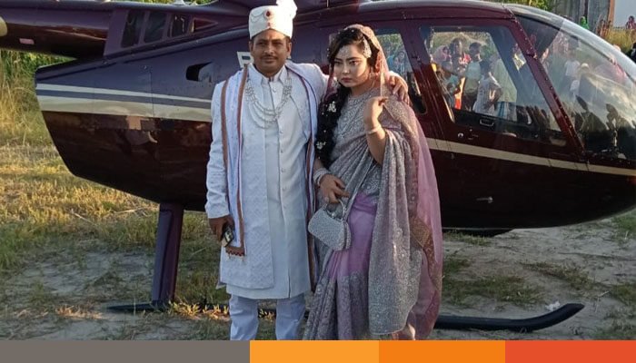 মুন্সিগঞ্জে স্ত্রী পালানোর পর হেলিকপ্টারে নতুন বউ আনলেন স্বামী