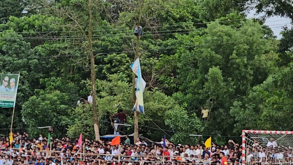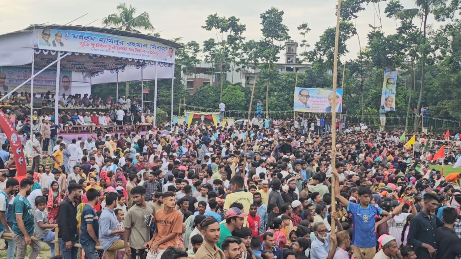 মুন্সীগঞ্জে লৌহজংয়ে বিদেশি খেলোয়াড়দের খেলা দেখতে হাজার হাজার দর্শক মাঠে ভিড় জমিয়েছে। দর্শকসংখ্যা এতটাই বেশি ছিল যে মাঠে জায়গা না পেয়ে ঝুঁকি নিয়ে গাছে উঠে খেলা উপভোগ করে দর্শকরা। এই ঘটনাটি মুন্সীগঞ্জের ফুটবল প্রেমীদের মধ্যে ব্যাপক উদ্দীপনা সৃষ্টি হয়েছে। মরহুম হামিদুর রহমান সিনহা স্মৃতি ফুটবল টুর্নামেন্টে এ দৃশ্য লক্ষ্য করা গেছে। শুক্রবার (২০-জুন) বিকেলে উপজেলার কলমা হাই স্কুল মাঠে খেলাটি অনুষ্ঠিত হয়।