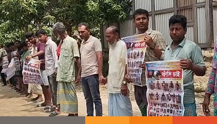 মুন্সীগঞ্জ সদরে নির্বাচন পরবর্তী সংহিতা’য় নিহত জসিম নায়েব (৩৩) হত্যা মামলার আসামি গ্রেপ্তার ও বিচারের দাবিতে মানববন্ধন অনুষ্ঠিত হয়েছে। সোমবার (৩০ মার্চ) বেলা ১১ টায় দিকে সদর উপজেলার আধারা ইউনিয়নের চর আবদুল্লাহ্পুর গ্রামে নিহতের বাড়ির সামনে এ কর্মসূচি পালন করেন নিহতের স্বজন ও এলাকাবাসী। এতে ঘন্টাব্যাপী সময়ে স্থানীয় শতাধিক নারী-পুরুষ অংশ নেন।