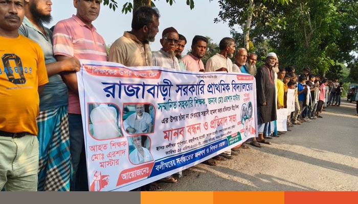 উল্লেখ্য, গত ২৫ মার্চ রাতে রাজাবাড়ী সরকারি প্রাথমিক বিদ্যালয়ের সহকারী শিক্ষক এরশাদ মিয়ার ওপর স্থানীয় কাইয়ুম মোল্লার নেতৃত্বে হামলার ঘটনা ঘটে। এ ঘটনায় আহত শিক্ষক বাঙ্গরা বাজার থানায় লিখিত অভিযোগ দিলেও এখনো দৃশ্যমান কোনো অগ্রগতি হয়নি।