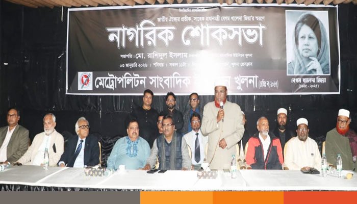 দেশনেত্রী ও সাবেক প্রধানমন্ত্রী বেগম খালেদা জিয়া ছিলেন বাংলাদেশের সংসদীয় গণতন্ত্রের অন্যতম স্থপতি এবং উদার নেতৃত্বের প্রতীক- এমন মন্তব্য করেছেন বক্তারা। মেট্রোপলিটন সাংবাদিক ইউনিয়ন (এমইউজে) খুলনার উদ্যোগে আয়োজিত নাগরিক শোকসভায় তাঁরা এসব কথা বলেন।