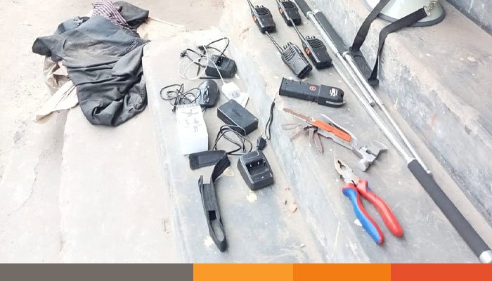 তল্লাশিকালে মাইক্রোবাস থেকে চারটি ফোল্ডেবল স্টিক, একটি ইলেকট্রিক শকার, চারটি ওয়াকিটকি, একটি ম্যাকগাইভার প্লাস স্ক্রু-ড্রাইভার, একটি ক্যামেরা ও চার্জার উদ্ধার করা হয়। এসব সামগ্রী নিয়ে সন্দেহ তৈরি হলে সেগুলো জব্দ করে থানায় নেওয়া হয়।