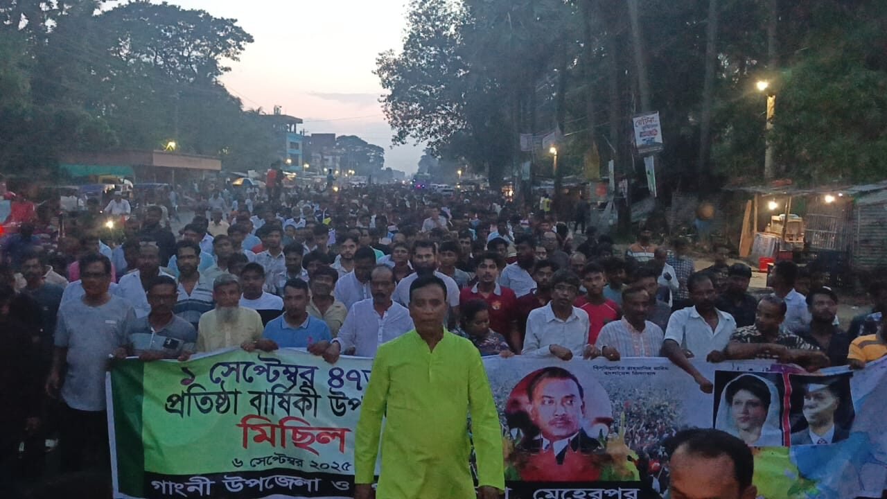 বাংলাদেশ জাতীয়তাবাদী দল বিএনপির ৪৭তম প্রতিষ্ঠাবার্ষিকী উপলক্ষে মেহেরপুরে আলোচনা সভা ও র্যালি অনুষ্ঠিত হয়েছে। শনিবার বিকেলে গাংনী উপজেলার হাসপাতাল বাজারস্থ বিএনপি কার্যালয়ে এ অনুষ্ঠান আয়োজন করা হয়।