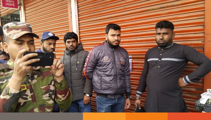 আজ বেলা এগারোটার দিকে শহরের হোটেল বাজার মোড়ে তাদেরকে আটক করা হয়। আটককৃতরা হলেন মাইক্রো ড্রাইভার মোনাখালী গ্রামের সোহেল রানা ছেলে ইজারুল হক, জামায়াত কর্মী কামদেবপুর গ্রামের সাবদার আলীর ছেলে সাহারুল ইসলাম এবং খোকসা গ্রামের রবিউল ইসলাম এর ছেলে সেলিম রেজা। এ সময় ঢাকা মেট্রো চ -১৯-৪১৪৬ নম্বরের মাইক্রোসহ গাড়িতে থাকা অস্ত্রসমূহ জব্দকরা হয়।