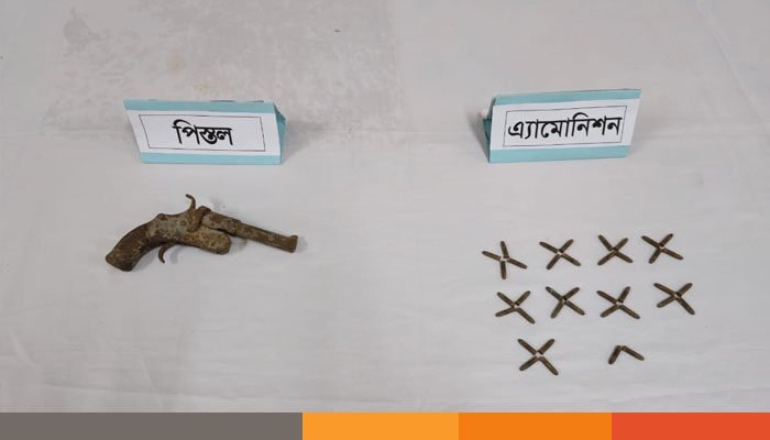 অভিযান শেষে একটি পিস্তল ও ৩৮ রাউন্ড গুলি উদ্ধার করা হয়।
