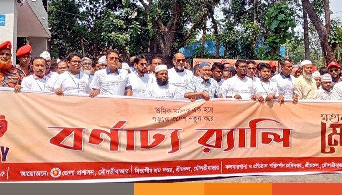 শ্রমিক-মালিক এক হয়ে, গড়বো এ দেশ নতুন করে- এ প্রতিপাদ্যকে সামনে রেখে দৈনিক ৮ ঘণ্টা কাজের দাবি আদায় ও অধিকার প্রতিষ্ঠায় বিভিন্ন শ্রমিক সংগঠনের পক্ষ থেকে মিছিল, র্যালি ও আলোচনা সভার মধ্য দিয়ে মৌলভীবাজারে পালিত হলো মহান মে দিবস এবং জাতীয় পেশাগত স্বাস্থ্য ও সেইফটি দিবস।