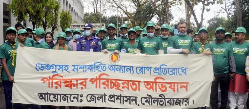 প্রধানমন্ত্রীর নির্দেশে ডেঙ্গু, চিকুনগুনিয়াসহ মশাবাহিত রোগ প্রতিরোধে মৌলভীবাজারে পরিচ্ছন্নতা, মশক নিধন ও জলাবদ্ধতা নিরসনে অভিযান কর্মসূচি শুরু হয়েছে। শনিবার (১৪ মার্চ) সকালে এই সমন্বিত কর্মসূচি শুরু হয় জেলা প্রশাসক প্রাঙ্গণ থেকে। এ উপলক্ষ্যে জেলা প্রশাসক তৌহিদুজ্জামান পাভেল এর নেতৃত্বে জনসচেতনতা বৃদ্ধির একটি বর্ণাঢ্য র্যালি বের হয় শহরে। র্যালি থেকেই শহরের কোর্ট রোড, চৌমুহনা, সেন্টাল রোড, এম.সাইফুর রহমান রোডের বিভিন্ন সড়কে চালানো হয় এই সমন্বিত পরিচ্ছন্নতা ও সচেতনতামূলক অভিযান।