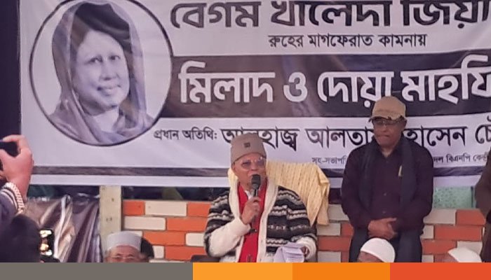 বিএনপির ভাইস চেয়ারম্যান সাবেক স্বরাষ্ট্র ও বানিজ্য মন্ত্রী ও পটুয়াখালী-১ আসনের বিএনপি মনোনীত প্রার্থী এয়ার ভাইস মার্শাল (অবঃ) আলতাফ হোসেন চৌধুরী বলেছেন, ম্যাডাম খালেদা জিয়া সমগ্র জাতিকে ঋনী করে গেছেন। তিনি গনতন্ত্র প্রতিষ্ঠার জন্য, মানুষের ভাত ও ভোটের অধিকারের জন্য আন্দোলন করে গেছেন। তিনি নারী শিক্ষা,কর্মসংস্থানসহ নারীকে স্বাবলম্বী করার জন্য কাজ করে গেছেন।বিগত ফ্যাসিস্ট সরকার তার ওপর অমানুষিক নির্যাতন করেছে।ম্যাডাম খালেদা জিয়া কখনো কারো সাথে খারাপ আচরন করেননি। প্রায় ৩৫ বছরের রাজনৈতিক জীবনে আমার তার সাথে কাজ করার সুযোগ হয়েছে আমি তার জীবন্ত সাক্ষী। তিনি নিজেই একটা ইতিহাস। পটুয়াখালীর দুমকিতে বেগম খালেদা জিয়ার রুহের মাগফেরাত কামনায় আয়োজিত এক দোয়া অনুষ্ঠানে এসব কথা বলেন তিনি।