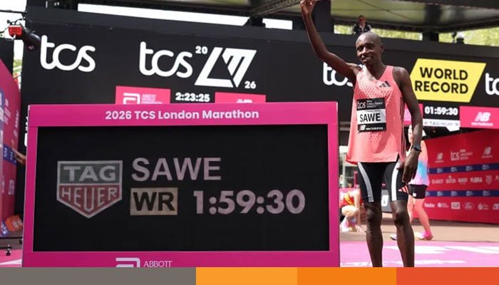 লন্ডন ম্যারাথনে ইতিহাস গড়েছেন কেনিয়ার দৌড়বিদ সেবাস্তিয়ান সাওয়ে। তিনি ১ ঘণ্টা ৫৯ মিনিট ৩০ সেকেন্ড সময় নিয়ে প্রতিযোগিতায় চ্যাম্পিয়ন হয়েছেন, যা ম্যারাথন ইতিহাসে প্রথমবার কোনো পুরুষ দৌড়বিদের দুই ঘণ্টার কম সময়ে জয়।