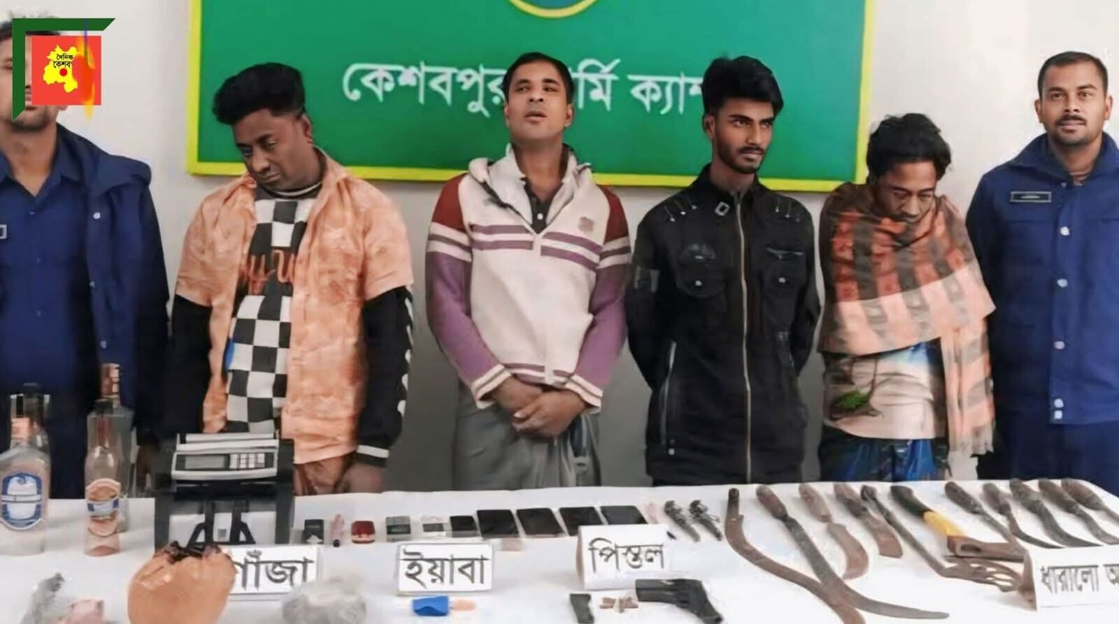 যশোরের কেশবপুরে যৌথবাহিনীর অভিযানে অবৈধ অস্ত্র ও ইয়াবাসহ গ্রেপ্তার ৪