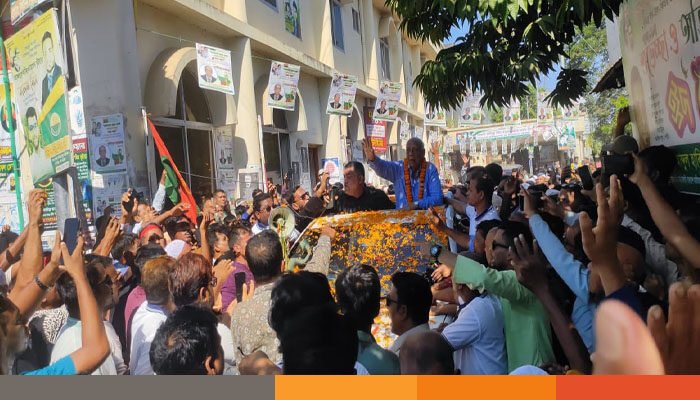 তার আগমনে রেলওয়ে জংশন এলাকায় উৎসবমুখর পরিবেশের সৃষ্টি হয়। বিভিন্ন এলাকা থেকে বিএনপি নেতাকর্মীরা জড়ো হন। ধানের শীষ দিয়ে সাজানো একটি রিকশাভ্যান এবং তাতে থাকা শিশুরা সবার দৃষ্টি আকর্ষণ করে।