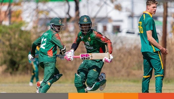 হারারেতে টস হেরে ব্যাটিংয়ের আমন্ত্রণ পাওয়া বাংলাদেশ উদ্বোধনী জুটিতে ৪১ রান তুলে। কিন্তু রান অর্ধশতক পূর্ণ হওয়ার আগেই ফিরে যান দুই ওপেনার জাওয়াদ আবরার ও রিফাত বেগ। আবরার ২১ ও রিফাত করেন ১৬ রান। ওয়ানডাউনে নামা আজিজুল হক তামিম মোটেই ইম্প্যাক্ট রাখতে পারেননি, ব্যান্ডাইল মাবাথার শিকার হওয়া এ ব্যাটার ২৮ বলে করেন মাত্র ৭ রান।