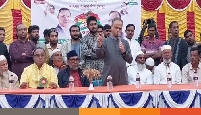 জেলা বিএনপির সভাপতি মাহমুদ হাসান খান বাবু খান বলেন, ভোটের মাধ্যমে যেটা নির্ধারিত হবে সেটা হলো এই, আগামী দিনে দেশের উন্নয়ন কী হবে। আর বেহেশতে যাওয়া, জান্নাতে যাওয়া এটা যার যার নিজের আমল। নিজের কর্ম। কেউ যদি আপনাদের কাছে আসে, কোরআন শরীফ আনে শুনেছি ছোট ছোট করে। নিয়ে এসে ছোয়াইতে বলে, ওনাদেরকে দয়া করে দেখাতে বলবেন কোরআনের কোন জায়গায় লেখা আছে কোন মার্কায় ভোট দিলে জানাত পাওয়া যাবে।