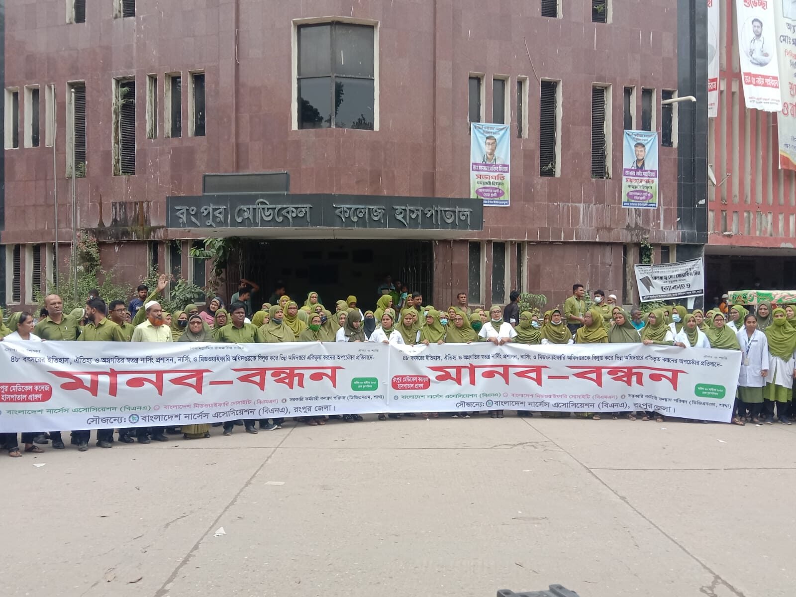 নার্সিং ও মিডওয়াইফারি অধিদপ্তর কে বিলুপ্ত করে বিভিন্ন অধিদপ্তরের একিভূত করনের অপচেষ্টার প্রতিবাদে সারাদেশের মত রংপুরেও মানববন্ধন কর্মসূচি পালন করা হয়েছে ।