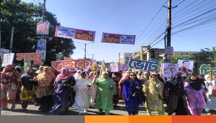 রংপুর-৩ আসনে বিএনপির মনোনীত প্রার্থীর সামসুজ্জামান সামু পক্ষে ধানের শীষের প্রচারে গণ মিছিল করেছে নেতাকর্মীরা।