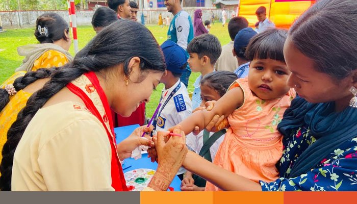 শিশুদের তুলির আঁচড়ে তৈরি দৃষ্টিনন্দন জাতীয় পতাকা ও শিল্পকর্মে পুরো অনুষ্ঠানস্থল হয়ে ওঠে বর্ণিল। এতে আগত দর্শনার্থীরাও মুগ্ধ হন খুদে শিল্পীদের সৃজনশীলতায়।