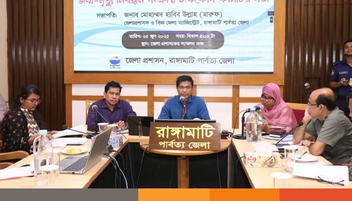 রাঙামাটিতে জন্ম ও মৃত্যু নিবন্ধন সংক্রান্ত জেলা টাস্কফোর্স কমিটির সভা অনুষ্ঠিত হয়েছে। বুধবার (২৫ জুন) দুপুরে রাঙামাটি জেলাপ্রশাসক কার্যালয়ের সম্মেলন কক্ষে জন্ম ও মৃত্যু নিবন্ধন সংক্রান্ত জেলা টাস্কফোর্স কমিটির এ সভা অনুষ্ঠিত হয়।