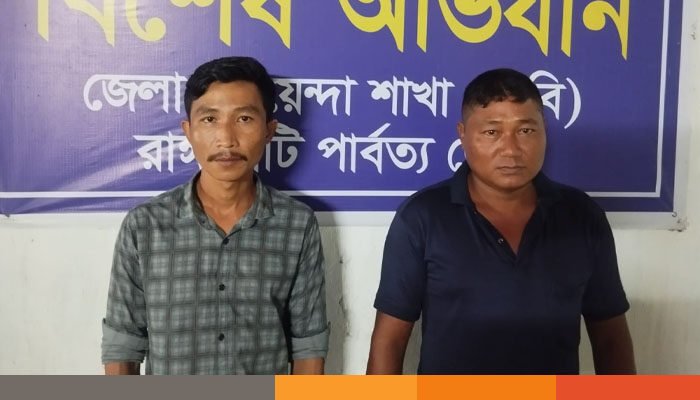 আটকরা হলেন- রাজন চাকমা (৩০) ও উদ্দীপ চাকমা (২৪)। তারা রাঙামাটি জেলার নানিয়ারচর উপজেলার বাসিন্দা।