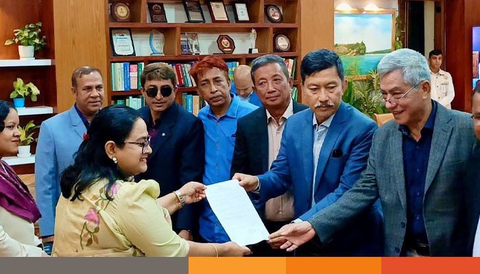 ছবি: বিএনপি মনোনীত প্রার্থী দীপেন দেওয়ান মনোনয়নপত্র দাখিল করছেন।