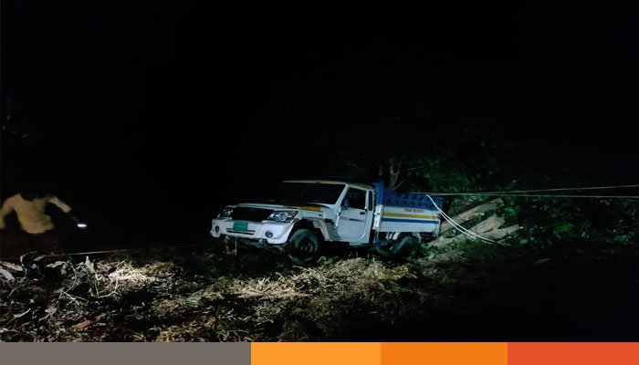 স্থানীয় সূত্রে জানা গেছে, গতকাল বৃহস্পতিবার দিবাগত রাত ১০টার দিকে গাছবহনকারী মিনি পিকআপ ঢালু রাস্তায় উপরে উঠতে ব্যর্থ হয়ে নিয়ন্ত্রণ হারিয়ে পিছনের দিকে গড়িয়ে খাদে পড়ে যায়। এতে গাড়িটি উল্টে গিয়ে গাড়িতে থাকা তিনজন শ্রমিক গাড়ির নিচে চাপা পড়েন।