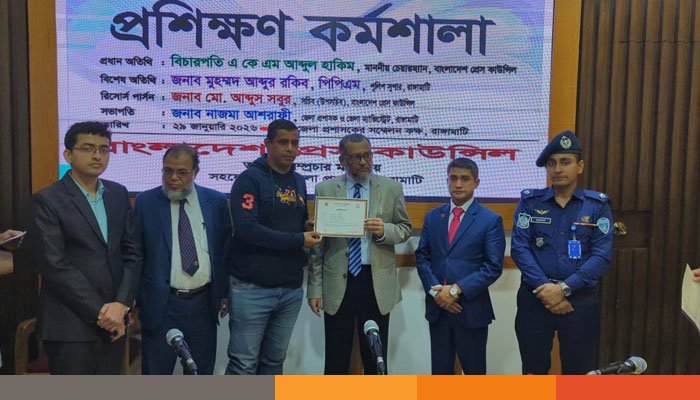 প্রশিক্ষণ কর্মশালায় প্রধান অতিথির বক্তব্যে বাংলাদেশ প্রেস কাউন্সিলের চেয়ারম্যান একেএম আব্দুল হাকিম বলেন, ‘গণমাধ্যম হচ্ছে রাষ্ট্রের চতুর্থ স্তম্ভ। তাই দেশ ও জনগণের কল্যাণ সাধনে গণমাধ্যমের সঙ্গে সংশ্লিষ্ট সাংবাদিকদের গুরুত্বপূর্ণ ভূমিকা রয়েছে। গণমাধ্যমকে অপ-সাংবাদিকতা প্রতিরোধসহ বস্তুনিষ্ঠ সংবাদ পরিবেশন করতে হবে। এতে করে দেশে ও জাতি উপকৃত হবেন।’