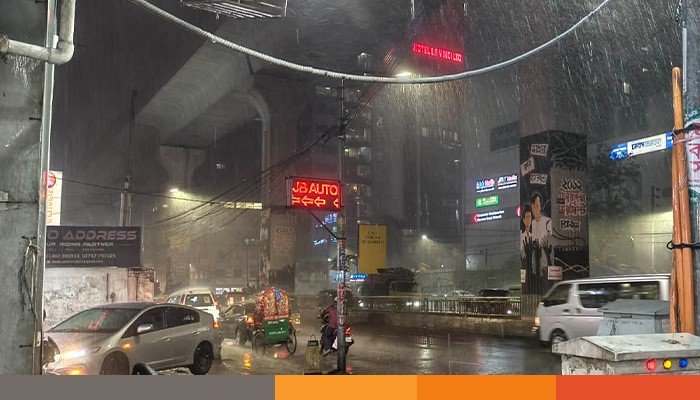 সন্ধ্যার পর হঠাৎ করেই রাজধানীর আকাশ কালো হয়ে ওঠে। ৭টার দিকে হঠাৎ ঝড়ো হাওয়ার সঙ্গে ধুলিঝড় বয়ে যায় বিভিন্ন এলাকায়। এরপর রাত ৮টার দিকে শুরু হয় ঝুম বৃষ্টি। বৃষ্টিতে ভিজেছে বাংলামোটর, শাহবাগ, মগবাজার, কারওয়ান বাজার. ফার্মগেট, তেজগাঁওসহ রাজধানীর বিভিন্ন এলাকা।