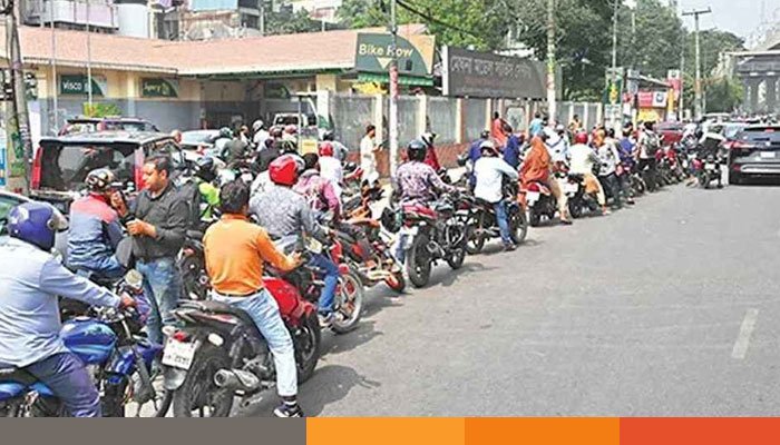 রাজধানীর ফিলিং স্টেশনগুলোতে আজও জ্বালানি তেলের জন্য দীর্ঘ লাইন