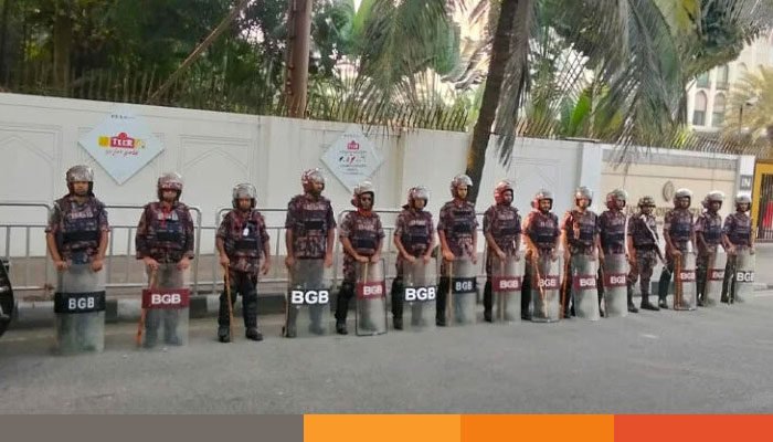 এতে বলা হয়েছে, সার্বিক আইন-শৃঙ্খলা রক্ষা ও নিরাপত্তা নিশ্চিত করতে রাজধানী ঢাকা ও আশপাশের জেলায় বিজিবি মোতায়েন করা হয়েছে। এরমধ্যে রাজধানীতে মোতায়েন করা হয়েছে ১২ প্লাটুন বিজিবি। সকাল থেকে তারা মাঠে টহল দিচ্ছে। যেকোনো অপ্রীতিকর পরিস্থিতি এড়াতে কাজ করছে বিজিবি সদস্যরা।