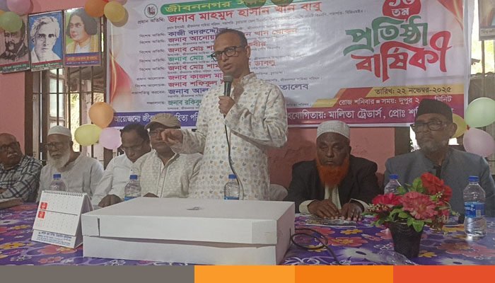 চুয়াডাঙ্গার “জীবননগর সাহিত্য পরিষদের” ১৬তম প্রতিষ্ঠাবার্ষিকীতে বিজিএমইএ, চুয়াডাঙ্গা জেলা বিএনপির সভাপতি, চুয়াডাঙ্গা ২ আসনে বিএনপি মনোনীত এমপি প্রার্থী এবং জীবননগর সাহিত্য পরিষদের প্রধান উপদেষ্টা প্রধান অতিথি মাহমুদ হাসান খান বাবু বলেন- রাজনীতি সাহিত্যের বাইরে না, সাহিত্যেও রাজনীতির বাইরে নয়। এটাই বাস্তবতা।
