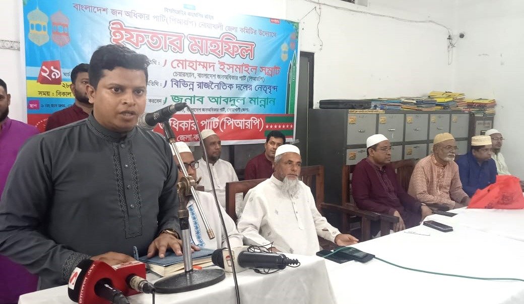 শনিবার (২৯ মার্চ) সন্ধ্যায় নোয়াখালী জেলা আইনজীবি সমিতির অডিটোরিয়ামে বাংলাদেশ জন-অধিকার পার্টি (পিআরপি) নোয়াখালী জেলা শাখা এই দোয়া মাহফিল ও ইফতারের আয়োজন করে।