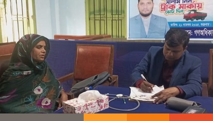 গণঅধিকার পরিষদ গোয়ালন্দ উপজেলা শাখার আয়োজনে দলের রাজবাড়ী-১ আসনের মনোনয়ন প্রত্যাশী মো:জাহাঙ্গীর খানের উদ্যোগে শুক্রবার দিনব্যাপী দূর-দূরান্ত থেকে আগত মানুষের মাঝে ব্যবস্থাপত্র ও ওষুধ প্রদান করা হয়। চিকিৎসা সেবা প্রদান করেন- ফরিদপুর মেডিকেল কলেজ হাসপাতালের মেডিসিন বিভাগের বিশেষজ্ঞ চিকিৎসক ডা:সঞ্জয় সাহা।