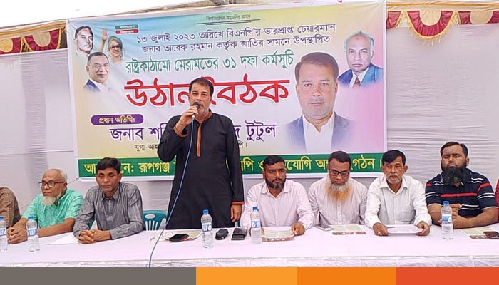 এ সময় শরীফ আহমেদ টুটুল তার বক্তব্যে বলেন, আগামী প্রজন্মের জন্য একটি সুন্দর সমাজ গড়ে তুলতে, সমৃদ্ধ দেশ গড়তে বিএনপির ভারপ্রাপ্ত চেয়ারম্যান তারেক রহমানের দেয়া ৩১ দফা বাস্তবায়নের বিকল্প নাই। তাই ঘরে ঘরে এ দফাগুলো পৌঁছে দিলে জনগণের কাছে বিএনপি হয়ে ওঠবে আরও আস্থাশীল। শহীদ প্রেসিডেন্ট জিয়াউর রহমানের সুযোগ্য সন্তান বিএনপির দূর্দিনেও দলকে ঐক্যবদ্ধ ও শৃঙ্খলায় রেখেছেন। সামনে সময় আসছেন দেশের হাল ধরবেন তিনি। তাঁর নির্দেশে বিগত সময়ে আমরা রাজপথে ছিলাম। আজো আছি। সব সময় থাকবো। আমরা ক্ষমতায় এলে রূপগঞ্জবাসির শান্তি শৃঙ্খলা ও নিরাপদ বসবাস যোগ্য পরিবেশে বসবাস করবে।