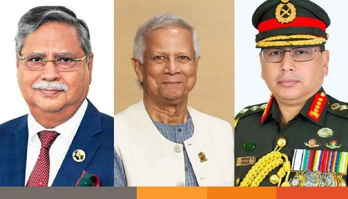 বাংলাদেশ সেনাবাহিনীর প্রধান জেনারেল ওয়াকার-উজ-জামান আজ সোমবার রাষ্ট্রপতি মোহাম্মদ সাহাবুদ্দিন ও অন্তর্বর্তী সরকারের প্রধান উপদেষ্টা অধ্যাপক মুহাম্মদ ইউনূসের সঙ্গে সৌজন্য সাক্ষাৎ করেছেন। এ সময় সেনাপ্রধান রাষ্ট্রপতি ও প্রধান উপদেষ্টাকে তাঁর (সেনাপ্রধান) সাম্প্রতিক চীন সফরের বিষয়ে অবহিত করেন।