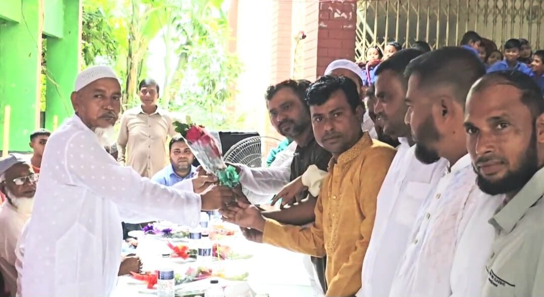 ৩৭ বছর ২২ দিন শিক্ষকতা থেকে অবসর গ্রহণ শেষে নারায়ণগঞ্জের রূপগঞ্জের ছনি বাড়িয়ার টেক সরকারি প্রাথমিক বিদ্যালয়ের প্রধান শিক্ষক শাহনেওয়াজ মোল্লাকে আনুষ্ঠানিক সংবর্ধনা প্রদান করেছেন সাবেক শিক্ষার্থী ও এলাকাবাসী।