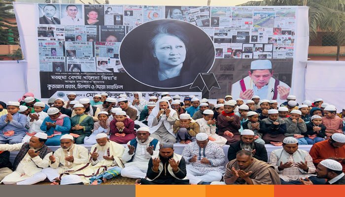 বিএনপি চেয়ারপার্সন ও সাবেক প্রধানমন্ত্রী প্রয়াত বেগম খালেদা জিয়ায় রুহের মাগফেরাত কামনায় খতমে কুরআন ও দোয়া মাহফিল অনুষ্ঠিত হয়েছে।