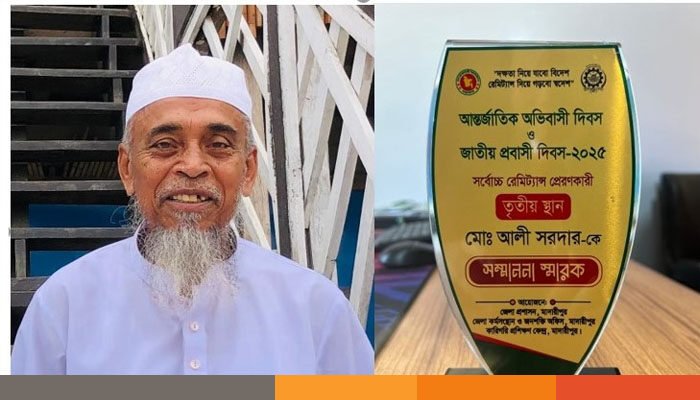 “দক্ষতা নিয়ে যাবো বিদেশ রেমিট্যান্স দিয়ে গড়বো দেশ” এই স্লোগানকে সামনে রেখে আন্তর্জাতিক অভিবাসী দিবস ও জাতীয় প্রবাসী দিবস–২০২৫ উপলক্ষে মাদারীপুরে বর্ণাঢ্য আয়োজনে সম্মাননা প্রদান করা হয়েছে। এ উপলক্ষে আয়োজিত অনুষ্ঠানে সর্বোচ্চ রেমিট্যান্স প্রেরণকারী হিসেবে মাদারীপুর জেলার কালকিনি পৌর এলাকার ৭ নং ওয়ার্ডের অধিবাসী মোহাম্মদ আলী সরদার-কে তৃতীয় স্থান অর্জনের জন্য সম্মাননা স্মারক প্রদান করা হয়।