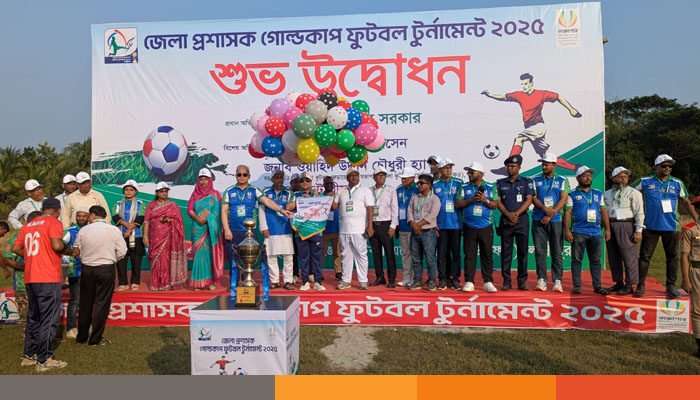 বর্ণাঢ্য আয়োজনে লক্ষ্মীপুরে শুরু হয়েছে জেলা প্রশাসক (ডিসি) গোল্ডকাপ ফুটবল টুর্নামেন্ট। শনিবার (২৫ অক্টোবর) বিকেলে জেলা স্টেডিয়ামে পায়রা ও বেলুন উড়িয়ে টুর্নামেন্টের উদ্বোধন করেন অতিথিরা। উদ্বোধনী ম্যাচে মুখোমুখি হয় রামগতি পৌর একাদশ বনাম চন্দ্রগঞ্জ থানা একাদশ। টুর্নামেন্টে জেলার ১০টি উপজেলা ও থানা দল অংশ নিচ্ছে। উদ্বোধনী অনুষ্ঠানে প্রধান অতিথি ছিলেন জেলা প্রশাসক রাজীব কুমার সরকার।