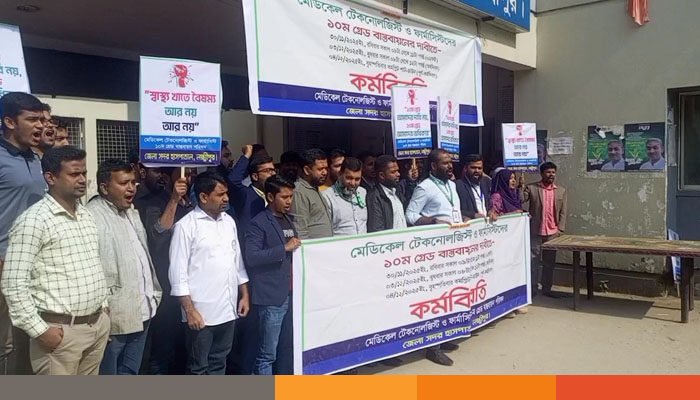 ‘মেডিকেল টেকনোলজিস্ট ও ফার্মাসিস্ট ১০ম গ্রেড বাস্তবায়ন পরিষদ’-এর ব্যানারে এই কর্মসূচি পালিত হয়।