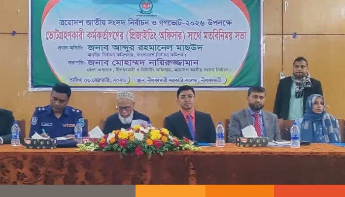 ত্রয়োদশ জাতীয় সংসদ নির্বাচন ও গণভোট উপলক্ষ্যে শুক্রবার (৬ ফেব্রুয়ারি) সকাল ১০টার দিকে নীলফামারী সরকারি কলেজের হল রুমে ভোট গ্রহণকারী প্রিজাইডিং অফিসারদের সাথে মতবিনিময় সভায় প্রধান অতিথির বক্তৃতায় তিনি এ কথা বলেন।
