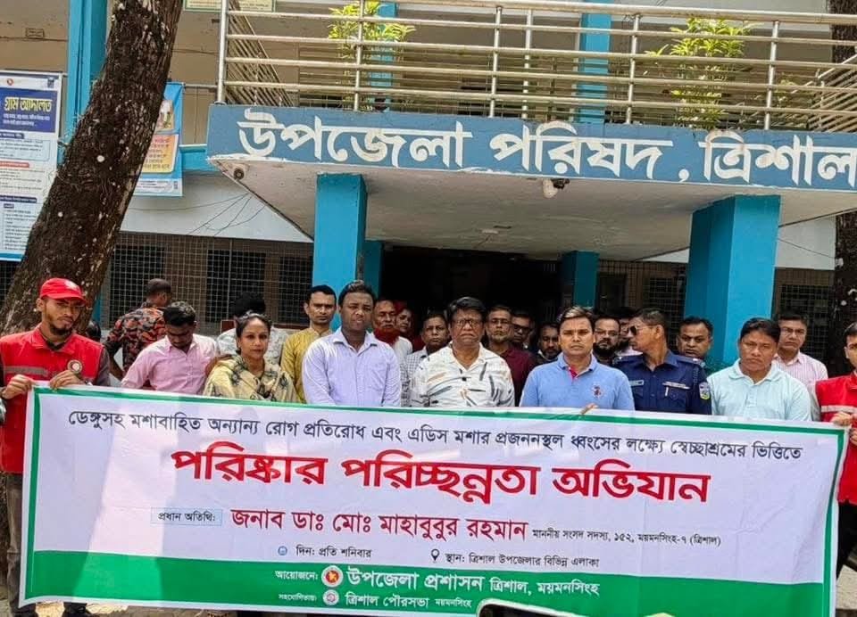 প্রধানমন্ত্রী ঘোষিত দেশব্যাপী পরিচ্ছন্নতা কর্মসূচির অংশ হিসেবে ময়মনসিংহের ত্রিশাল উপজেলা প্রশাসন ও পৌর প্রশাসনের যৌথ আয়োজনে ডেঙ্গু সহ প্রজননস্থল ধ্বংস ও বিশেষ পরিচ্ছন্নতা অভিযানের উদ্বোধন কালে ময়মনসিংহ ৭ ত্রিশাল আসন থেকে নির্বাচিত জাতীয় সংসদ সদস্য ও বিএনপির নির্বাহী কমিটির অন্যতম সদস্য ডঃ মাহবুবুর রহমান লিটন এ কথাগুলো বলেন । এমপি লিটন বলেন ড্রেন কত কিলোমিটার পরিষ্কার হয়েছে তাও সরেজমিনে গিয়ে খতিয়ে দেখব ।
