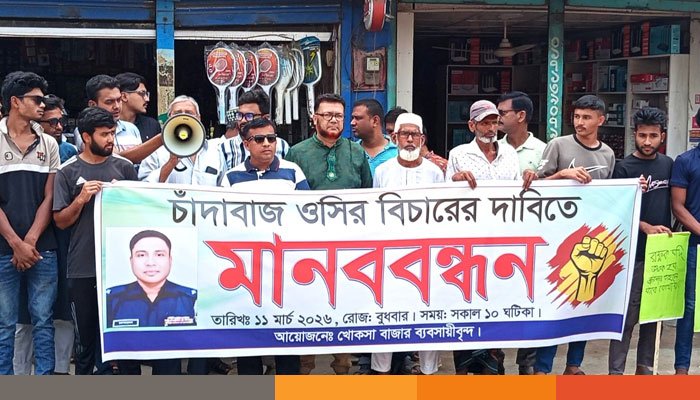 বুধবার সকাল সাড়ে ১০ টায় উপজেলা সদরের বাজারে ব্যবসায়ীদের ব্যানারে ওসির বিচারের দাবিতে এ মানববন্ধন অনুষ্ঠিত হয়।
