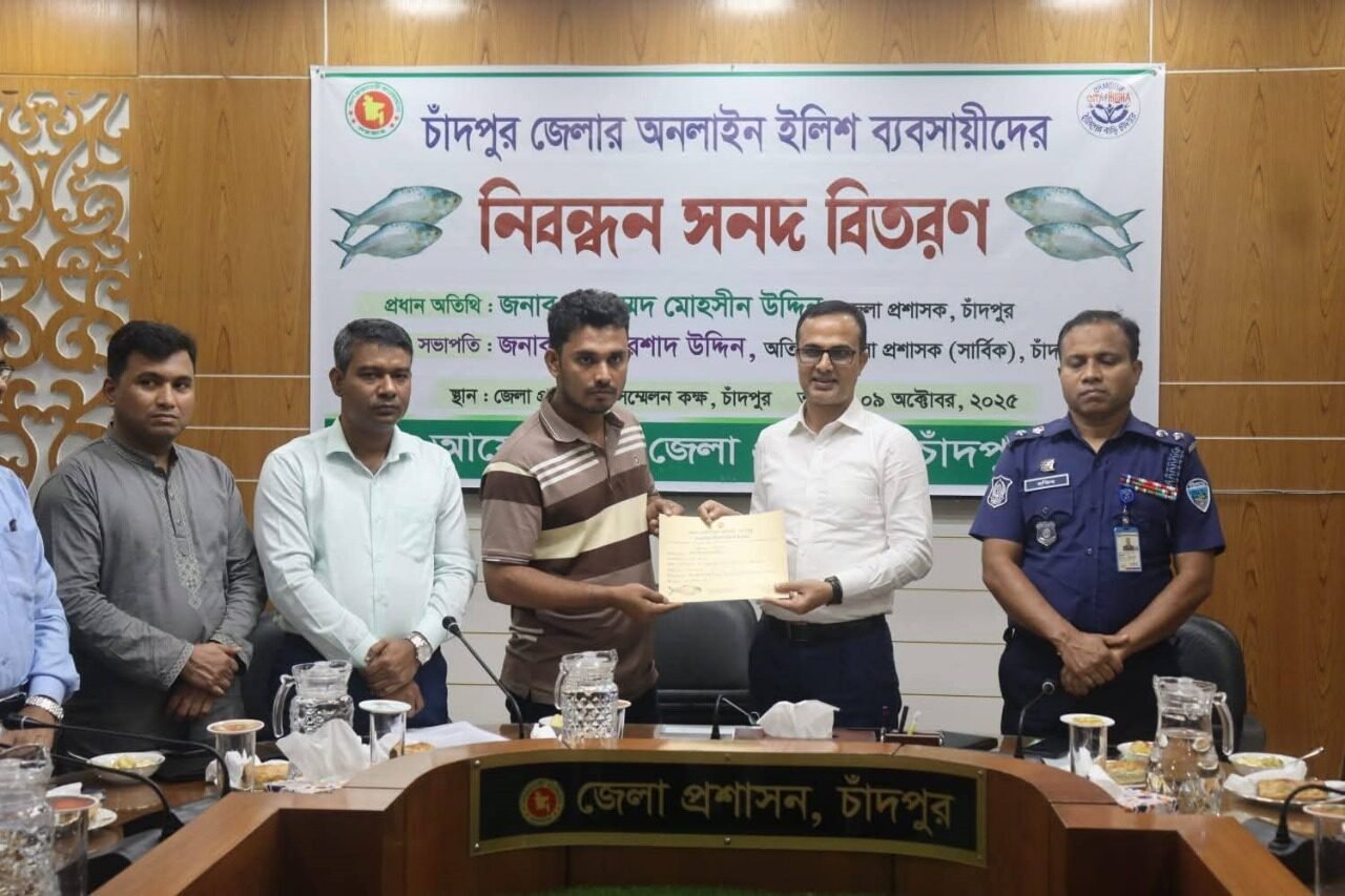 ৯ অক্টোবর বৃহস্পতিবার বিকালে জেলার অনলাইন ইলিশ ব্যবসায়ীদের নিবন্ধন সনদ বিতরণ অনুষ্ঠানের মাধ্যমে এ তথ্য জানিয়েছেন জেলা প্রশাসক মোহাম্মদ মোহসীন উদ্দিন।