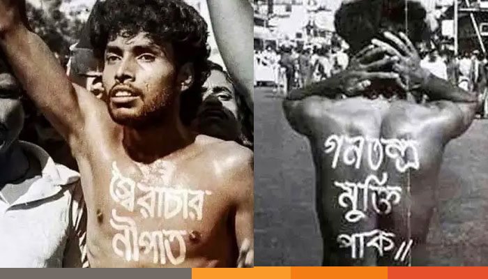 নিজের শরীরে লিখেছিলেন— ‘গণতন্ত্র মুক্তি পাক, স্বৈরাচার নিপাত যাক’। সেই বার্তা বুকে ধারণ করে বিক্ষোভে অংশ নিতে গিয়ে পুলিশের গুলিতে প্রাণ দেন তিনি। নূর হোসেনের এই আত্মদানই দিনটিকে আজও গণতন্ত্র মুক্তি দিবস হিসেবে স্মরণ করায় জাতিকে।