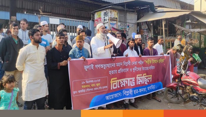 শুক্রবার (১৯ ডিসেম্বর ২০২৫) দুপুরে আখাউড়া উপজেলা মডেল মসজিদের সামনে থেকে বিক্ষোভ মিছিলটি শুরু হয়ে রেলস্টেশন এলাকায় গিয়ে শেষ হয়। পরে রেলওয়ে স্টেশন এলাকায় পথসভা অনুষ্ঠিত হয়।
