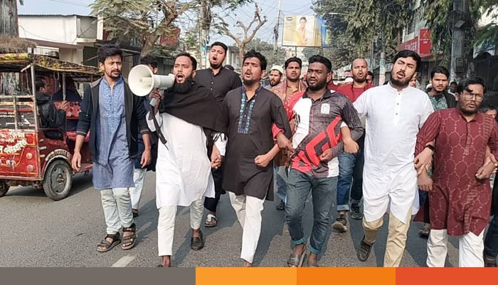দোয়া শেষে বিক্ষোভ মিছিল দিনাজপুর প্রেসক্লাবে এসে একটি সংক্ষিপ্ত বিক্ষোভ সমাবেশ অনুষ্ঠিত হয়েছে।