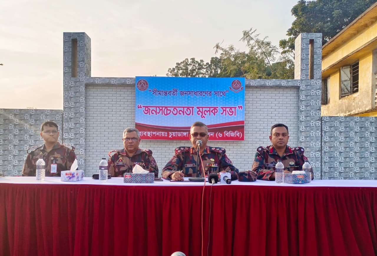 আসন্ন ত্রয়োদশ জাতীয় সংসদ নির্বাচনকে সামনে রেখে শান্তিপূর্ণ ভোট গ্রহণ, আইনশৃঙ্খলা বজায় রাখা এবং সীমান্ত অঞ্চলে সচেতনতা বৃদ্ধি নিশ্চিত করতে বিজিবির উদ্যোগে জনসচেতনতামূলক একটি সভা অনুষ্ঠিত হয়েছে।