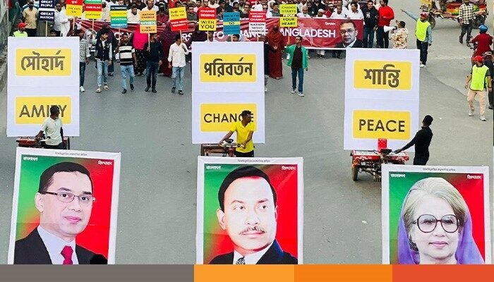 ঢাকা মহানগর উত্তর বিএনপির সাবেক সহ সাধারণ সম্পাদক হাফিজুর রহমান সাগীরের নেতৃত্বে বিএনপি, ঢাকা মহানগর উত্তর স্বেচ্ছাসেবক দলের সহ-সভাপতি ও উত্তরা পশ্চিম থানা স্বেচ্ছাসেবক দলের সভাপতি মোস্তফা কামাল হৃদয়ের নেতৃত্বে স্বেচ্ছাসেবক দল, ঢাকা মহানগর উত্তর ছাত্রদলের সদ্য সাবেক সভাপতি মেহেদী হাসান রুয়েলের নেতৃত্বে যুবদল এবং ঢাকা মহানগর উত্তর ছাত্রদলের সিনিয়র সহ-সভাপতি রবিউল আওয়াল ভূঁইয়া রবির নেতৃত্বে ছাত্রদলের নেতাকর্মীরা সৌহার্দ্য, পরিবর্তন ও শান্তির বার্তা নিয়ে মিছিলে অংশ নেন।