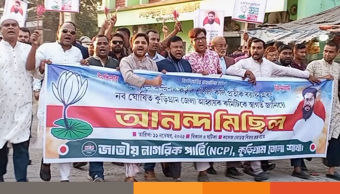নির্বাচন কমিশন কর্তৃক শাপলা কলি প্রতীক বরাদ্দ পাওয়া ও জেলা আহবায়ক কমিটির তালিকা প্রকাশের খবরে কুড়িগ্রামে আনন্দ মিছিল করেছে জাতীয় নাগরিক কমিটি (এনসিপি)’র নেতাকর্মীরা।এসময় জেলার বিভিন্ন উপজেলা থেকে আসা মহিলা পুরুষ নেতাকর্মীদের হাতে ব্যানার ফেস্টুন ও শ্লোগানে মুখরিত করে পুরো শহর।