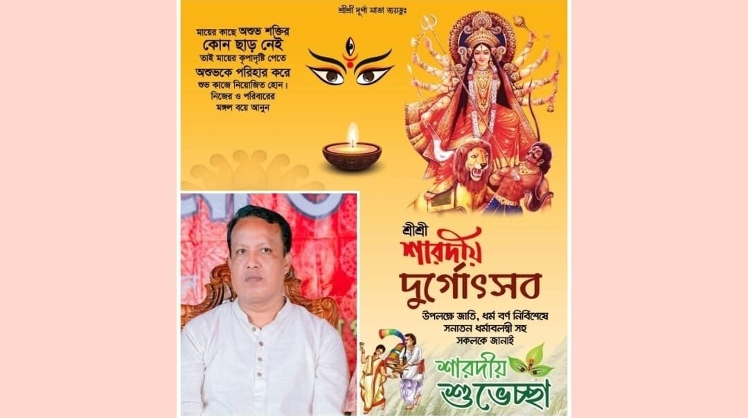 সনাতন ধর্মালম্বীদের অন্যতম ধর্মীয় উৎসব শারদীয় দূর্গোৎসবে সবাইকে শারদীয় শুভেচ্ছা জানিয়েছেন জাতীয় হিন্দু মহাজোট চাঁদপুর জেলা শাখার সভাপতি ও সমাজসেবক রতন দাস।